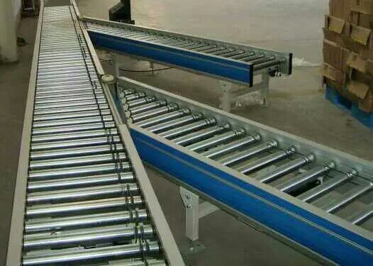 15. 滾筒輸送機是滾筒輸送機的一個重要部件。常用于水平或向上微斜的輸送線上。推進器把動力傳給滾筒,使其轉動,并通過滾筒表面和輸送物體表面之間的摩擦來輸送物體。依據驅動方式,可分為單機驅動和多機驅動。前一種輥子帶有獨立的傳動裝置,易于拆卸。為了降低設備成本,后者是由一種驅動裝置驅動的幾個群體。聯合傳動有齒輪傳動、鏈式傳動和帶式傳動三種傳動方式。滾筒輸送機一般采用交流電機驅動,雙速電機及傳動裝置也可根據需要使用。